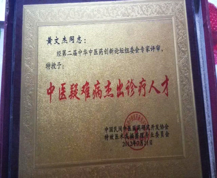 黄文杰,山东潍坊临朐,五十三岁。初中文化.,是黄氏中医的六代传人。从小受爷,父辈之教诲。言传身教,酷爱医学。从祖上流传对银屑病,白殿风,各种久治不愈的顽癣,各种皮肤病。腰椎间盘突出,股骨头坏死,颈椎病。癜狂症,癫痫症,咽炎,顽固性头痛,梅核气,高血压等病:有独到的见解和治疗方法。已从医二十年,赢得了较好的口碑:获得了患者的信赖。