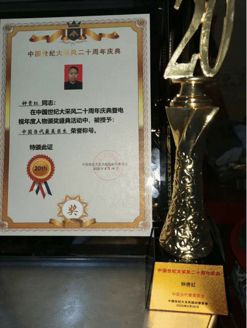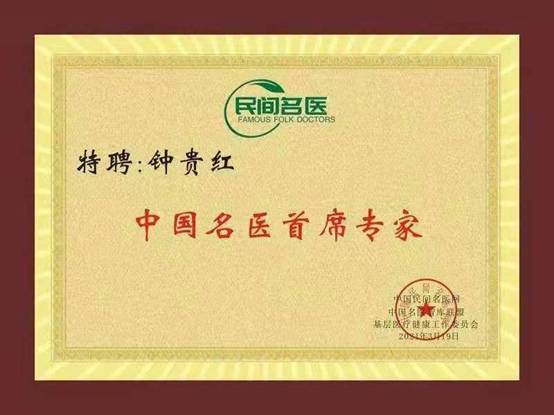 2021年3月份基层健康委员会授权钟贵红医师《中国名医首席专家》牌匾