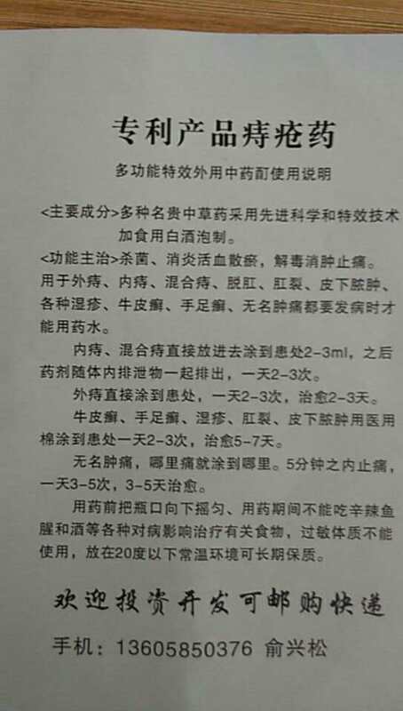 专利产品《痔疮、各种肿痛中药产品》寻求合作