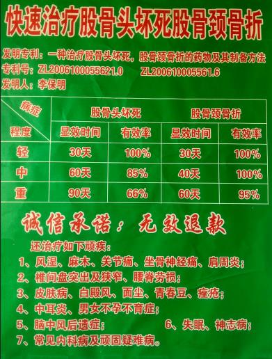 六、内服专利中成药,滋补肝肾,祛瘀生新。强筋健骨发明专利)