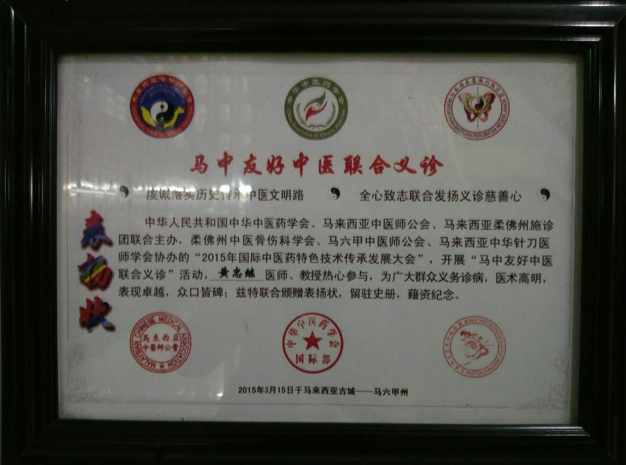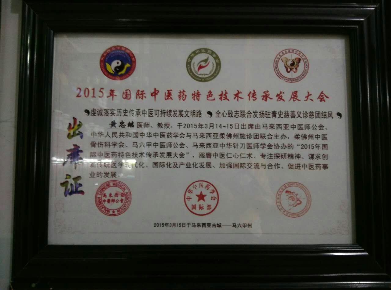 在此期间,2002年4月参加过“国际张仲景学术思想研讨会”荣得过2013年4月南阳市宛城区总工会“五一劳动奖章”;2014年荣得过南阳市宛城区“五一劳动奖状”。2015年3月份应中华中医药学会邀请并作为特邀嘉宾出席在马来西亚召开的“第三届国际中医药特色技术传承发展大会”并作大会特邀发言;得到国内外同仁的一致好评!