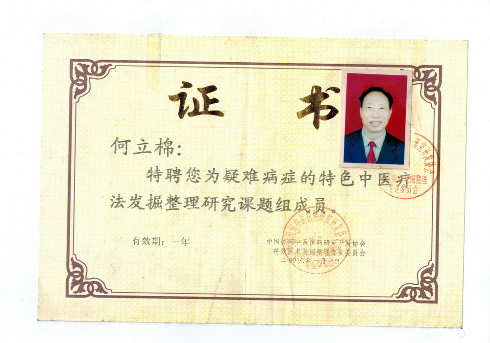 何氏胃灵散是何氏第6代(100余年)祖传中药秘方,专治各种胃病,纯中药制剂。解放后,何立棉医师1959年中学毕业后应征入伍,在部队当卫生员,于1969年退伍返乡,退休后他在继承了祖业的基础上,把祖传下来治胃病的中药秘方和在部队从事医务工作所累积的经验加以研究,推陈出新,用现代科学方法,经过15年时间的反复试验,于1985年研制成“胃灵散”一至五号,在临床试验后于1990年9月18日经卫生部临床药理基地、中国中医研究院西苑医院进行了“急性毒性”、“慢性毒性”全面检验,检验结论是:“无毒、无副作用、使用安全”,何氏胃灵散的治愈率达到95%以上。(现经第7代何文医师二十年的实践、整理、科学配方制成药片及药丸等,能够彻底根除胃肠病,治愈后不复发)。病例遍布全国各地及港、澳、台和东南亚各国,甚至欧美一些国家也有相当数量的病例,本药曾刊登于求实杂志社、人民日报、浙江中医杂志等10多种书刊醒目的标题报道了何立棉专家的事迹。详细资料大家可以在国医网等一些知名网站上可以查到,或者可以百度输入“何立棉”,到目前为止治愈的患者达几十万人,遍布28个省,14个国家,何立棉医师参加众多的医药研讨会,获得许多荣誉证书,我列举一部分,有图有真相。