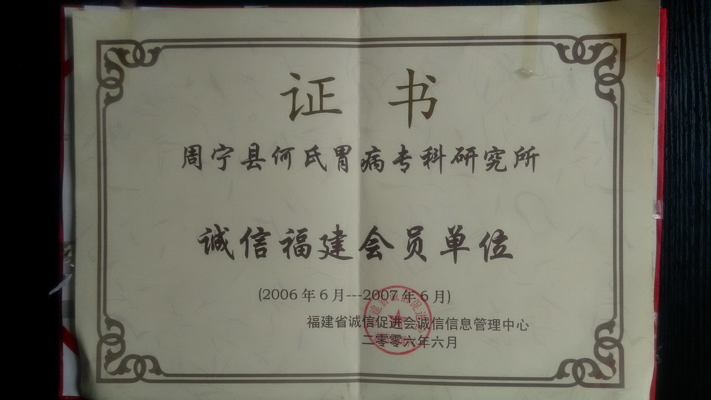 福建省周宁县何氏胃病专科研究所、专科门诊