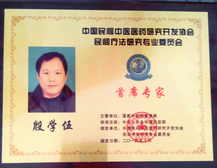 2015.3.25殷学伍中国民间中医药研究开发协会发的首席专家奖牌