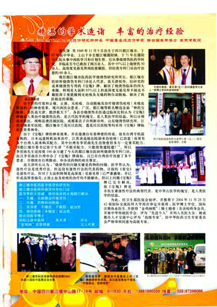 “烧烫伤的难题关键是药物问题,解决了药物即解决了烧烫伤的四大难题”——高天津