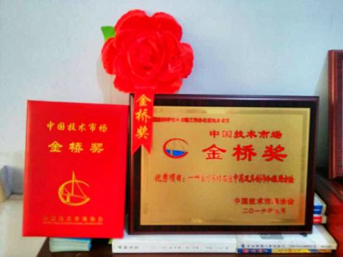 该科研成果荣获第八届中国技术市场金桥奖之优秀项目奖,是全国技术市场领域最高权威奖项