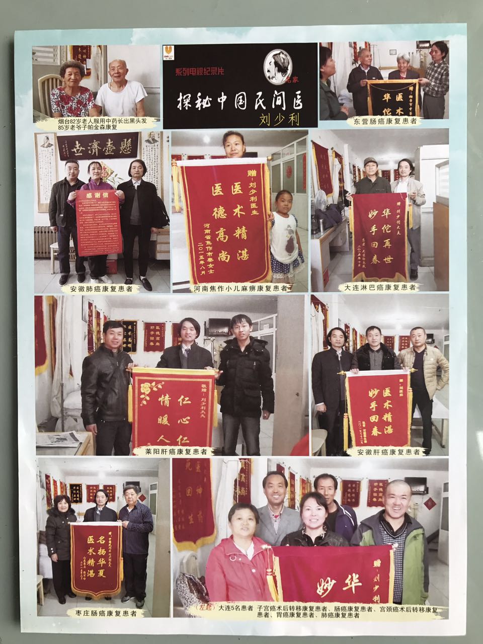 特别是癌症、尿毒症、白血病方面,曾在【中医药发展论坛】上撰写《一个农民的儿子解开了世界之谜》一文在第二届中医药发展论坛上,荣获优秀学术成果一等奖,同时被授予“全国中医药继承与创新奖”。刘少利把解除患者的病痛作为自己的毕生目标,为患者带来了福音,因此被老百姓评价为“杰出名医名院社会公益人物”等 刘少利二十多年的研究奠定了坚实的基础,多年的经验,发现80%的患者不需要做手术,60%的患者不需要住院,用中药完全可以治疗,鼻炎、青春痘、痔疮、湿疹瘙痒、白内障、牛皮癣、口腔溃疡、咽喉炎、心脏病、肝炎、结肠炎、前列炎、腰间盘突出、股骨头坏死、肩周炎、老年心脑血管病、脑血栓、心脏病、糖尿病以及并发症、男女不孕不育症、妇科病、男科病、疑难杂症、脑肿瘤、肝癌、肺癌、乳腺癌、直肠癌、结肠癌、胃癌等都可以用中药治疗的,特别是针对癌症患者。 解除病人的痛苦是我们最大的幸福!让我们共同为人类作出新的更大的贡献!