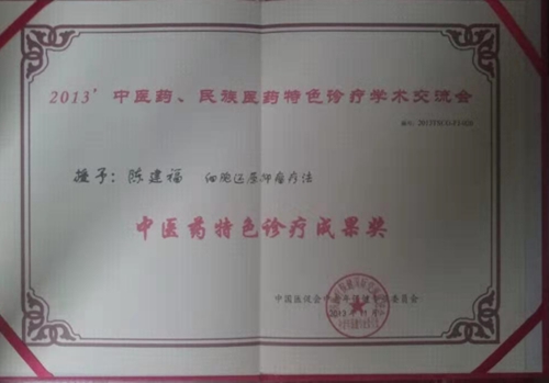 陈建福:1960年出生。继承祖业,从12岁开始跟随父亲学医认药,1988年3月报上海清华进修学院进修中西医结合系,1992年4月毕业,毕业后一直在中医结合临床研究诊断、治疗、处方用药以现代科学的思想为主导,总结中医药在临床的真正治疗的疗效,已掌握了成熟的中药诊疗技术。专业研究汲取绝对安全、绿色、高效能普通攻克人类的常见病、多发病和各种疑难顽疾的中医临床诊疗技能,2014年获得中医药一技之长医师资格证和国家授予的处方权,为祖国人民繁荣昌盛做出应尽的贡献。