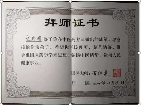 文绍明,“医圣传人”,著名中医专家,中医执业医师。师承国医大师李佃贵传承弟子。湖南永州人,1966年出生于中医世家,代代相承,受祖辈们对传统医学热爱的影响,幼承家训,师承祖传,遍览历代医著,精研中医经典及名家著述,以求进他山之助。学识渊博,尤擅临床实践,注重疗效,积累了丰富中医的理法方药和辩证施治的临床经验。