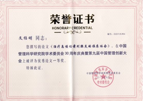 研制出了“一种治疗骨质增生的中药组合物,申请专利号:201810268845.7”。