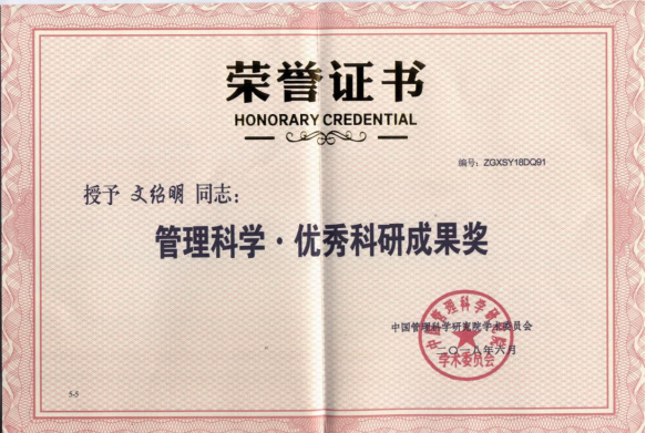 现任中国管理科学研究院学术委员会 特约研究员;