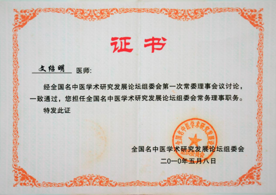 全国名中医学术研究发展论坛组委会 常务理事;