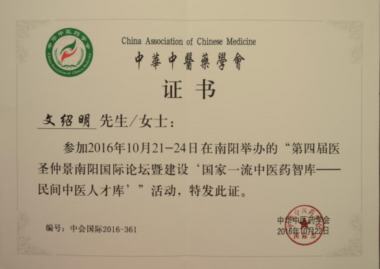 文绍明中医诊所为中国民营科技促进会 会员单位,