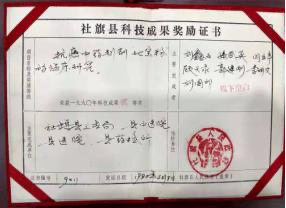 图为社旗县科技卫生部门于 1996 年 11 月出具的中医世家“抗癌消瘤粉”