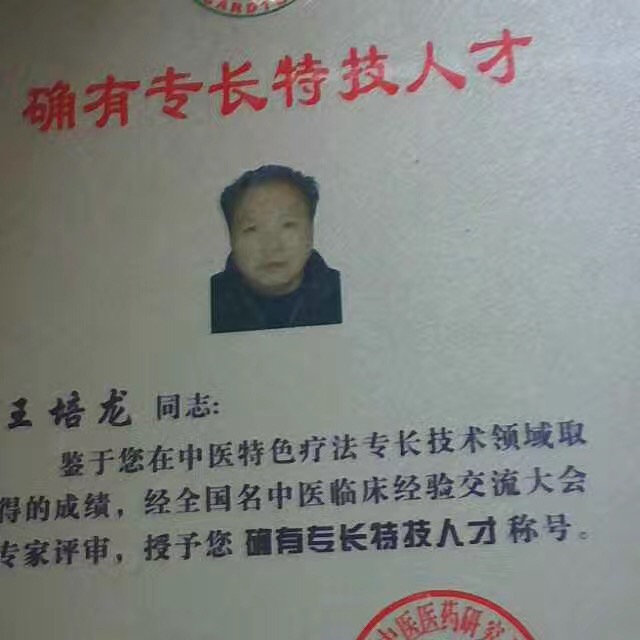 王培龙自幼学习中医,在祖传秘方的基础上,通过长年的看病治病经验加以改进,对肺癌,疑难杂症、脑血栓后遗症、偏瘫、无力、有一定的治疗专业,中药对久治不愈咳嗽,痰中带血、早中期肺癌、低热肺结核、食道癌和类风湿关节炎、脑血栓有一定的治疗技术,(对于动过手术的,化疗过的患者不接诊)对牛皮癣等皮肤病治疗有很好地疗效。欢迎广大患者前来咨询就诊。