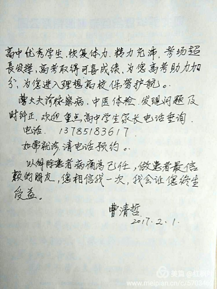 下面是曹清哲老中医写给所有面临高考的学子,尤其是衡中,石一中,二中等重点高中的学子及家长的一封信。