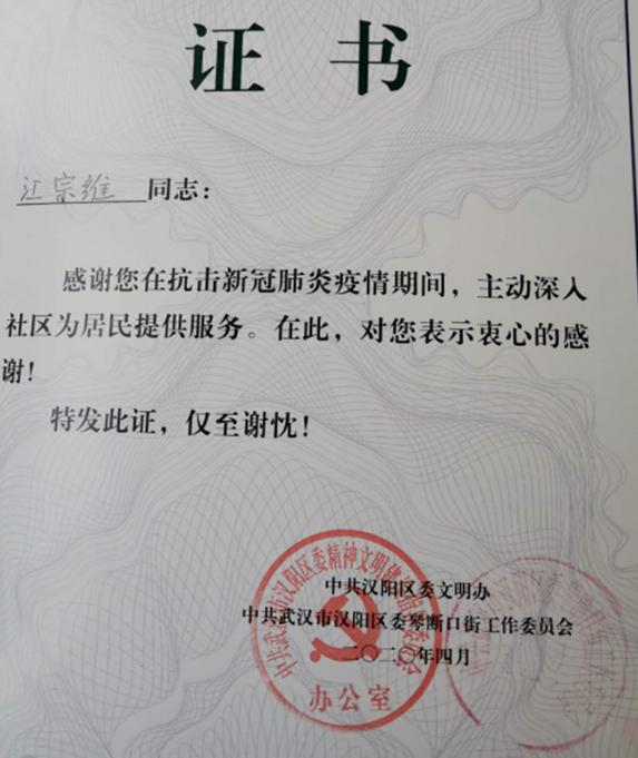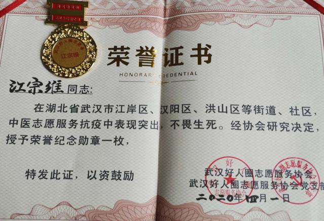 武汉好人圈在武汉好人圈志愿服务协会会长、武汉立新中医院院长侯立新教授的带领下,来自全国多个省市志愿者驰援武汉,加入武汉好人圈"新冠肺炎中医防治及心理疏导志愿者服务队"。值得敬畏的是,他们用坚强的信念,忘我不惧生死的精神,每个志愿者都是自掏腰包,加入这场抗疫情战斗中来。 在这次抗击疫情的战斗中,中医师江宗维及其中医医疗自愿队员们,以守护人民群众生命安全和身体健康为最高使命,白衣执甲冲在疫情防控第一线,争分夺秒抢救患者,与疫魔进行殊死较量,展开了一场气壮山河的生命大救援,涌现出一大批感人肺腑、催人奋进的英勇事迹。展现了他们的初心使命、铁的担当与家国情怀。