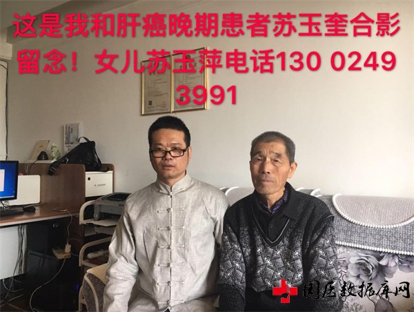 肝癌病例 苏玉奎 男 苏玉奎去年八月十五日在沈阳红十字医院检查身体,做彩超发现肝脏有了问题,建议做个CT检查,在医大二院做CT发现有一个直径6.9x6.3厘米的肿瘤,确诊为恶性的,医生建议手术治疗,考虑到患者年龄75岁,体重90多斤,承受不了手术的折磨。一个偶然的机会,找到林国和医生,开始治疗!从去年八月二十四号开始吃药,每半个月,中医给调一次药,吃了三十四天的时候,做CT检查,效果非常明显,又过了两个月,经CT检查,病灶基本消除了。苏玉奎2017年8月份至今都正常。电话:13002493991 13354242079