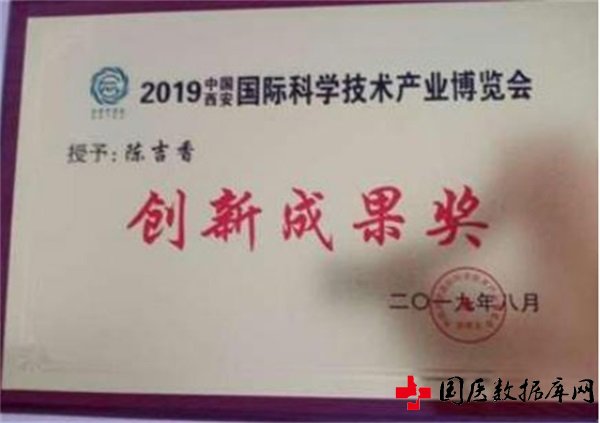 2019 年 8 月中国西安国际科学技术产业博览会:授予陈吉香创新成果奖牌。