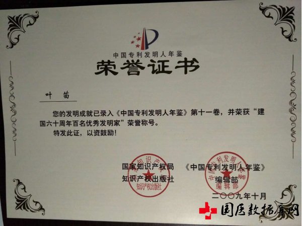 2009年因四个笫一的发明成就被录入中国专利发明人年鉴笫十一卷,并荣获建国六十周年百名优秀发明家荣誉称号。