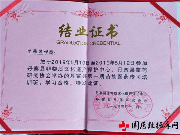 罗邵洪:男,生于1958年,贵州省丹寨县人,初中文化,出生在贵州省苗药之乡丹寨县,自幼就有对中草药的偏爱经常跟随本地民间中草医上山采药和到处看病救人,立志长大后要做一名中草医,初中毕业后,一次偶然的机会结缘到本地比较有名的老中草医师,并拜师学艺,老中草医看他对中草药的挚爱有加和刻苦专研,老中医把毕生心血传授于他,现在的罗邵洪在传承和自我创新中,本人独创专科苗药火疗法根治;颈椎腰椎骨刺痛风现己治愈1500人左右,特色的治疗;胃肠神经管论证(浅表性胃炎)脑梗塞,妇科宫颈糜烂,带状疱疹,内外痔疮等病有治愈疗效,本人看病论证以看眼睛为主来识别内科辩证能力,本人的行医宗旨是;在实践中不断提升自身看病治病能力,誓把苗侗医药推向世界,造福人类。