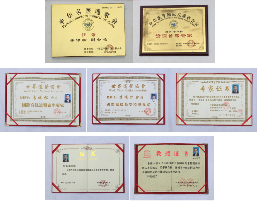 四川省国光文化科技研究院授予李佩松为客座教授并颁发《客座教授证书》。获得世界传统医学联合总会授予世界高级中医疑难病专家。