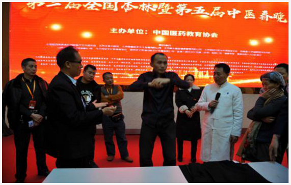 第五届中医春睌上,由王家太医院陈学忠院长亲自检查验证,给徐亘老师治疗腰间盘突出,几十秒钟的治疗,当场复位,活动自如。