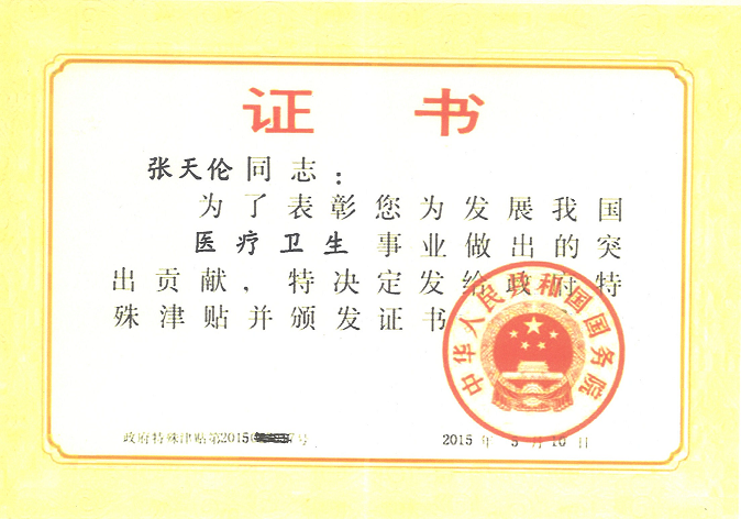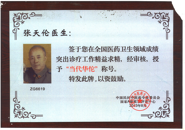 在广州召开的老将军名老中医专家,特评老将军健康保健医师《大典》。全军发行20万册。原永久特聘空军昆明医院任职中医专家,任几位在职将军保健医师,学雷锋先进个人,全国一、二届“百名道德模范”,“共和国功勋”人物,“建军80周年功勋”人物,中共中央党校一一领导干部落实科学发展观特约编委,科技部专家委员,创新专家委员,全国科监委CHC学部委员,中国科学院中国专家学者,美国中医药研究院终身教授,中国国际医学科学院“荣誉院士”,WTO国际国内执业注册双认证一一国际特色执业高级诊疗师。向党的“十八大”胜利献礼,纪念中国人民解放军85周年。《我们的队伍向太阳、共和国将士功勋谱》和特邀高档金牌编委聘书,荣获军功章一枚,荣获荣誉功勋匾一块。入录祖国杂志一一“军旅英雄”荣获中国最美军人荣誉称号和功勋章及奖牌,同时还荣获主席提词“壮志凌云”功勋章及奖牌,军委副主席签字的银牌,获五一劳动开幕功勋章,五一劳动“英模”功勋章及奖牌,2017年4月在北京万寿宾馆召开了中国工匠精神表彰大会,荣获“八一”指挥刀模型,入编中国科学院主管,四川西部文化文献编泽研究中心,《看中国人才强国》大型文献,《科教兴国》一书,此书出版,呈送党中央国务院有关部门领导,西部各省市,面向全国各省市自治区党委人大政府、政协组织人事部门及全国图书馆、档案馆发行,同时才料还进入西部发展网。编入第三届共筑中国梦一一中国名医表彰榜及特色医疗(新)技术医学成果大会上评为“当代中华十大国医名师”奖牌和证书,入编《共和国赤子》报国先锋时代人物画传,无私奉献为人民,赤胆中心报祖国一一中国科学专家张天伦教授。中国科学院一一引领时代的中国学者,评为著名医学泰斗一一张天伦。