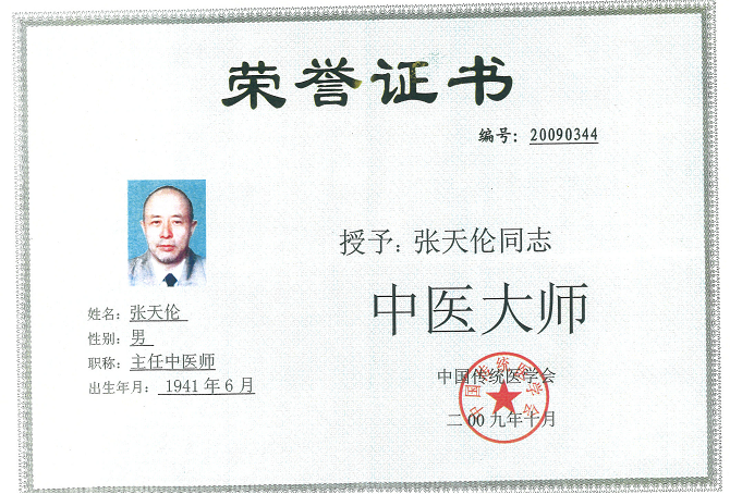 张天伦,男,汉族,1941年6月出生,重庆市永川区,国际执业注册中医师(高级),163个国家卫生部通用证书,国际中医药学泰斗,(执照)A级(一等)教授,国际评估联盟主席——安德斯科特伯尔签字(国际备案主证)。张天伦同志《军旅英雄·强军梦》列为十佳优秀军人形象代表《祖国杂志》。西安中医培训学院研究生结业(毕业)证书(经陈可翼院士签字),PHD医学哲学博士学位,执业教授,执业主任中医师,国家人力资源和社会保障部,人事技能鉴定高级中医内科医师,全球自然医学科学员院士,NO:SJK0845,中国名人文化研究院院士兼理事,中华名医联合会理事长,重庆市卫生局屈谦局长推荐卫生部副部长邵逸夫副部长批准任理事长职务。中国国际职业评审委员会评为执业注册中医师“高级”163个国家卫生部认可,享受国务院特殊津贴,文化程度鉴定,中医内科博士。医药高级心理咨询师、医药高级讲师,中国健康教育管理专家,教育部人生科学学会会员。