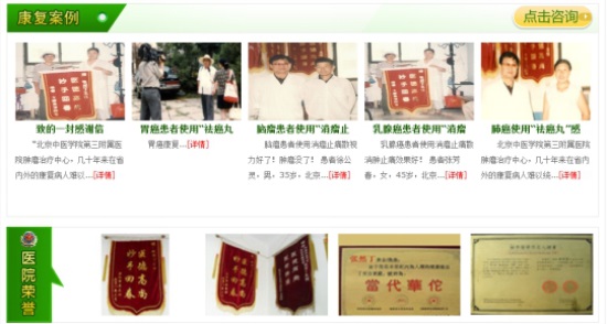 我门诊中医肿瘤专家研制的中药扶正抗癌排毒疗法(中药扶正散结抗癌合剂,祛癌丸内服,外贴瘤痛康贴),药力直达癌瘤病灶处快速杀灭癌细胞,快速止痛,消积水,化散肿瘤,消肿,活血化瘀,软化肿瘤之功效。疗效确切,无毒副作用,康复后不易复发。对正在化疗或放疗的癌症患者达到减毒增效的治疗效果,还能缓解化疗、放疗的毒副作用(恶心、呕吐、食欲减退、发热、脱发、白细胞减少等)。一般病情用药七到十天,恶心呕吐缓解,食欲增加,发热下降。用药一个疗程病人精神好转,自觉症状(吞咽困难,咳嗽、胸闷、呼吸困难及紫绀、发烧、消瘦等)得到缓解,脱发控制或长有新发,提高白细胞计数,提高机体免疫功能,增强患者的抗癌能力。对手术后癌症患者,应用我门诊肿瘤专家研制的抗癌系列药物,预防复发、扩散和再转移。
