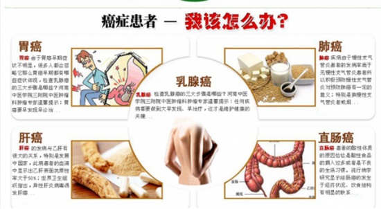 (3)既要治癌,“中药扶正抗癌排毒疗法”“消瘤法”更要保命;控制癌症,与癌共存:癌症的主要特征是“复发、转移”, 正是这个“复发、转移”特性才对人体构成严重的威胁,迫使机体逐渐死亡;有效地控制癌症的复发转移,属医学界的难点,同时也属抗癌治疗的重点,控制了癌细胞的复发转移也就有效地治愈了癌症。所以治疗癌症的关键不是一味地追求肿块消失,更重要的是控制癌细胞,使其不再进一步发生转移。大量临床实践证明,对中晚期病人进行大剂量放、化疗,或对产生耐药的患者再次进行化疗只能导致虚弱的生命更加垂危,加速了患者死亡。临床常常可以见到,患者死因不是因为癌症本身造成,而是由于不科学、不恰当的杀伤性治疗所致。如肝癌多次介入后出现腹水、黄疸等肝功衰竭而致死;肺癌胸水化疗后导致呼吸衰竭而死亡;胃癌、肠癌化疗后恶心、呕吐,患者更加衰竭而死亡;白血球下降,患者感染而死亡等。对晚期癌症的治疗更重要的是减轻痛苦,提高生活质量,控制病情,稳中求进,以便获得“长期带瘤生存”