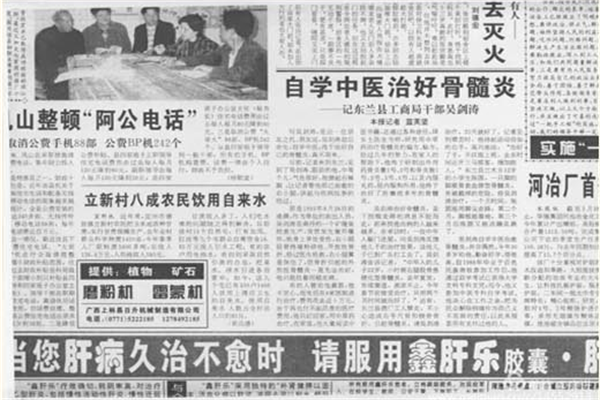 20多年前,河池日报也参加报道过吴剑涛自学中医缘由,并为自己治愈骨髓炎不平凡事迹。
