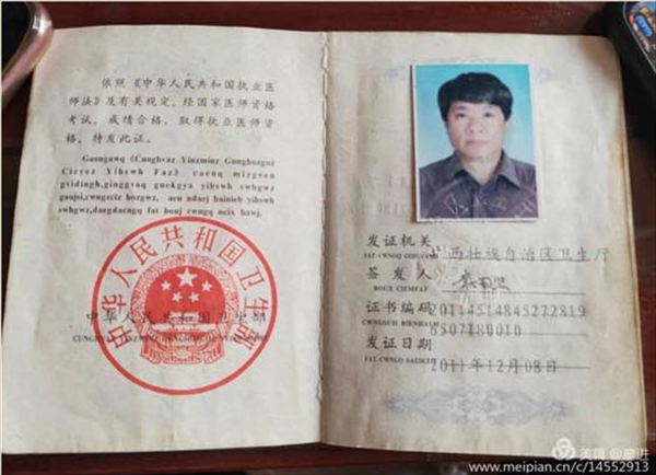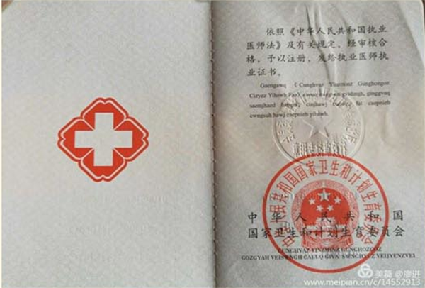 宝剑鋒从磨砺出,梅花香自苦寒来。经过自己努力与付出,他所获得的中国医医师职业资格证书。