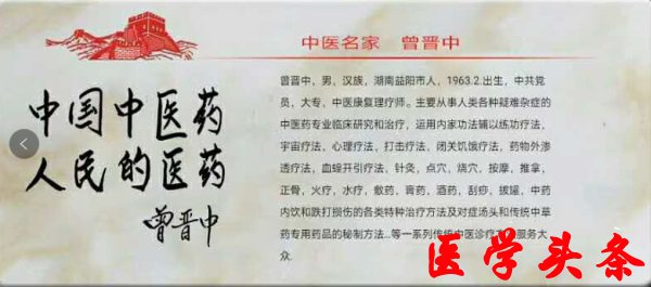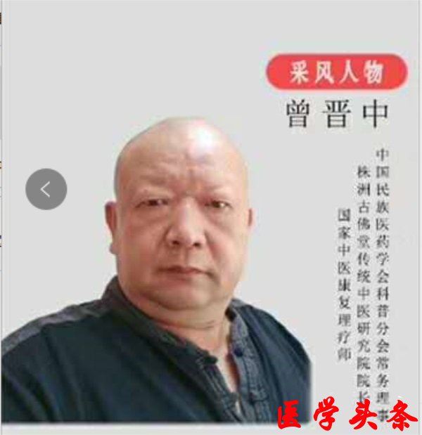 曾晋中 男 汉族1963年2月出生,湖南益阳人,中共党员,大专,中医康复理疗师。从小热爱传承学习中医,于2017年4月1日创立株洲古佛堂传统中医研究院,主要从事人类各种疑难杂症的中医药专业临床研究和治疗,运用内家功法辅以练功疗法,宇宙疗法,心理疗法,打击疗法,闭关饥饿疗法,药物外渗透疗法,血蝗开引疗法,针灸,点穴,烧穴,按摩,推拿,正骨,火疗,水疗,敷药,膏药,酒药,刮痧,拔罐,中药内饮和跌打损伤的各类特种治疗方法及对症汤头和传统中草药专用药品的秘制方法等一系列传统中医诊疗方法。