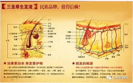 三圣草生发灵能够清除毛嚢毒素,修复受损毛发,去除油垢,有效清洁毛孔、毛嚢内堵塞的皮脂酸、污垢和其它不良有害产物,打开毛嚢细胞,让毛嚢活动自如,合成酪氨酸酶。生成黑色素,使毛嚢深层机能得到根本性改善,护张毛细血管,改善微循环,使有效营养成分全部渗入毛嚢,达到激活、改善、修复的功效。