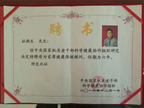 中央国家机关老干部健康协作组织首席健康保健顾问。