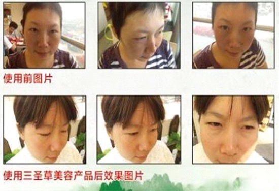 本公司最新研制生产的三圣草系列美容护肤产品是以中药材西洋参、西红花、三七、黄疚、珍珠等二十多种名贵药材组成的复方制剂。本产品功效明显,无毒、无副作用,不含化学物质,产品使用的添加剂为可食用添加剂,被称为“可以喝的美容化妆品”。产品从研发到临床运用花了8年多的时间,通过大量的人群试用,根据不同的年龄阶段及人体新陈代谢功能差异的不同,反复改良配方,于2014年研制出多效煥颜醒肤水、多效清透驻颜凝乳、多效修护洗面奶、中药修护精华原液等多款产品。