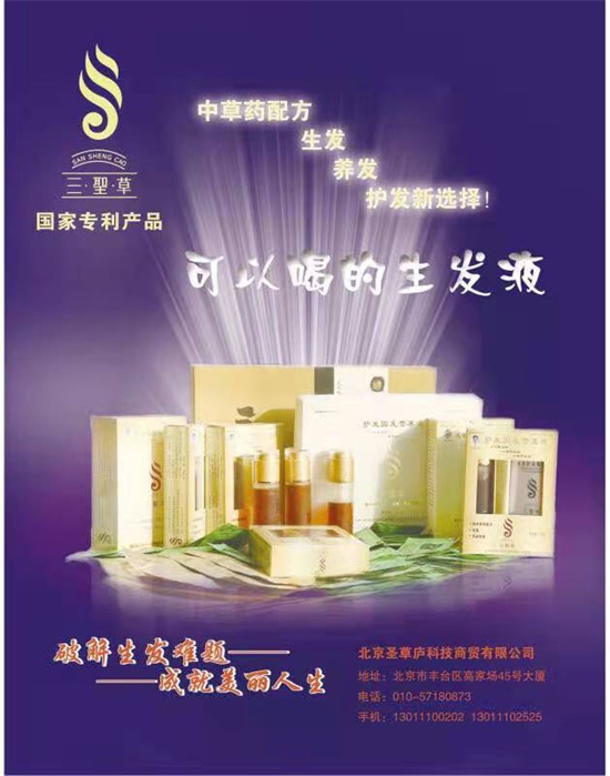 三圣草生发灵是由专利发明人杜晓生用十多年的时间,通过反复临床试验、药效观察,不同类型的脱发人群论证,与目前市场上所有的同类产品比对,经500多名脱发患者的验证。应用传统的中医药技术及父辈留下的祖传秘方,采用纯天然中草药材,经过暴晒、煮、蒸、浸、泡等二十多套工艺流程,按照中草药的特性,结合现代高科技技术精炼加工而成。已完全达到无毒、无副作用、无损伤,男女老少皆宜,适用人群广泛,是治疗脱发、白发、防脱发、去头油污垢、营养毛发的一款最新理想产品。