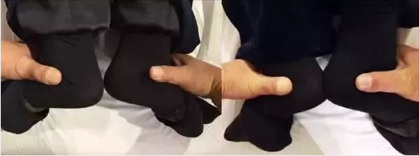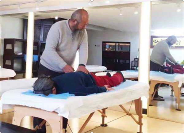 李女士双腿间长度相差2-3公分,走路不便,前来就诊时是由家人搀扶来的。周老师经过短暂的一番面诊后,让她侧身躺在床上,经过一按、一推、一引三步治疗,双腿齐了!