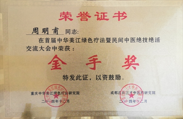 周明甫,周氏返古归元调理法高级整脊师、全息自然疗法继承人。“归元疗法”创新手法行业推广技术创始人,全国中医疑难病特效疗法及军地专家特殊贡献人物,十大影响力中医百科医师,在首届中华美江绿色疗法暨民间中医绝技绝活交流大会中荣获“金手奖”,中医骨才研究会及全国高等中医院校骨伤教育研究会副会长,第二届中国民间国医节荣获“国际华人医学领军奖”,华医头条网健康顾问委员副主任委员。50年临床实践中,早年总结了“沿脊查病、沿脊治病,沿经查病、沿经治病”的十六字方针。之后,又经过20多年的探索和实践,自创一套全息自然疗法,包括与众不同的望诊和与众不同的调理技术,通过全面调整人体结构和疏通人体经络,达到身体健康之目的。因用非医疗手段调理,沒有药物引起的副作用,做到安全丶可靠丶效捷丶轻巧,赢得广泛好评。