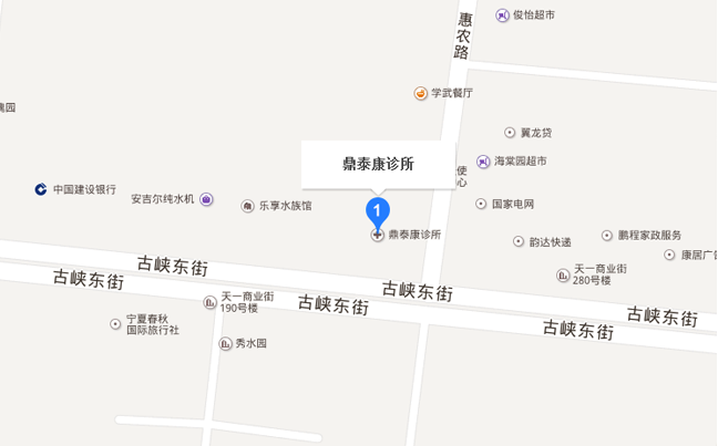 地址 :宁夏吴忠青铜峡市小坝惠农路119号鼎泰康诊所