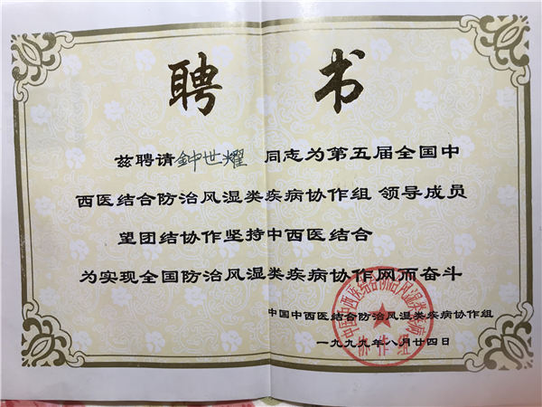 1998年中医药治疗类风湿关节炎1200例疗效观察 在德国获世界传统医学治疗疑难病症优秀论文奖