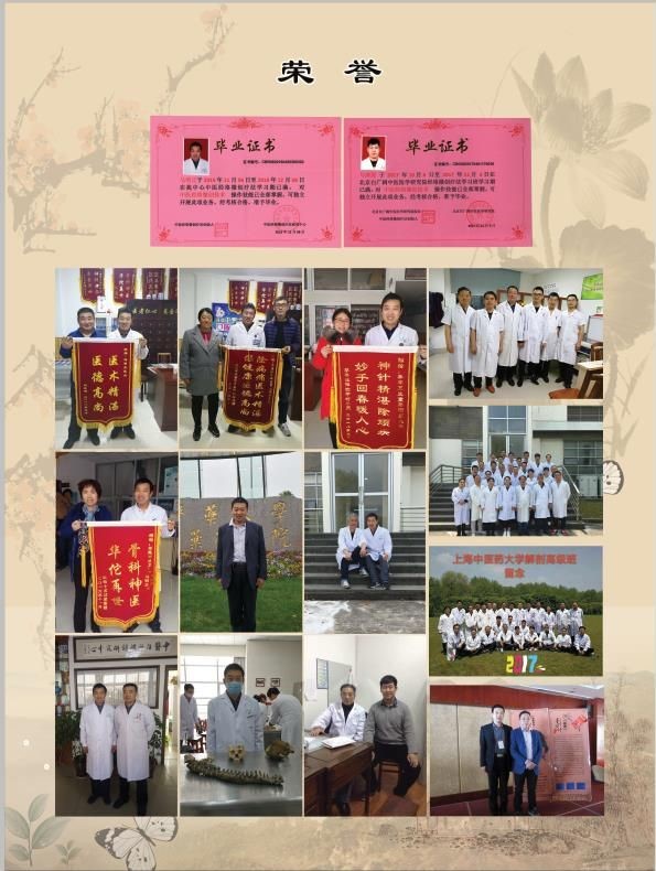 1990年在泰安医学院学习特色激光治疗以及美容,主要针对皮肤粉刺 黑 痣、扁平疣、鸡眼、黑斑、胎记【小范围】、鼻炎、中耳炎、痔疮疗效显著。2005年在肛肠医院学习激光治疗肛肠疾病及微创治疗狐臭;2008年在济南学习小针刀深筋膜松解疗法; 2012年在武汉学习龙氏正脊疗法;2015年5月在济南学习衡易针法;2016年11月在北京白广阔中医研究院进修学习;2017年4月在上海中医药大学学习解剖;2017年11月在山西太原进修针灸;2018年3月在广东东莞第三人民医院学习激痛疗法,先后到潍坊青岛,黄岛即墨,城阳等地学习,对颈肩腰腿病有着35年的临床经验。 被评为基层特色诊疗定点医疗机 荣获多次“颈腰椎康复成果奖”深受患者尊重和欢迎。