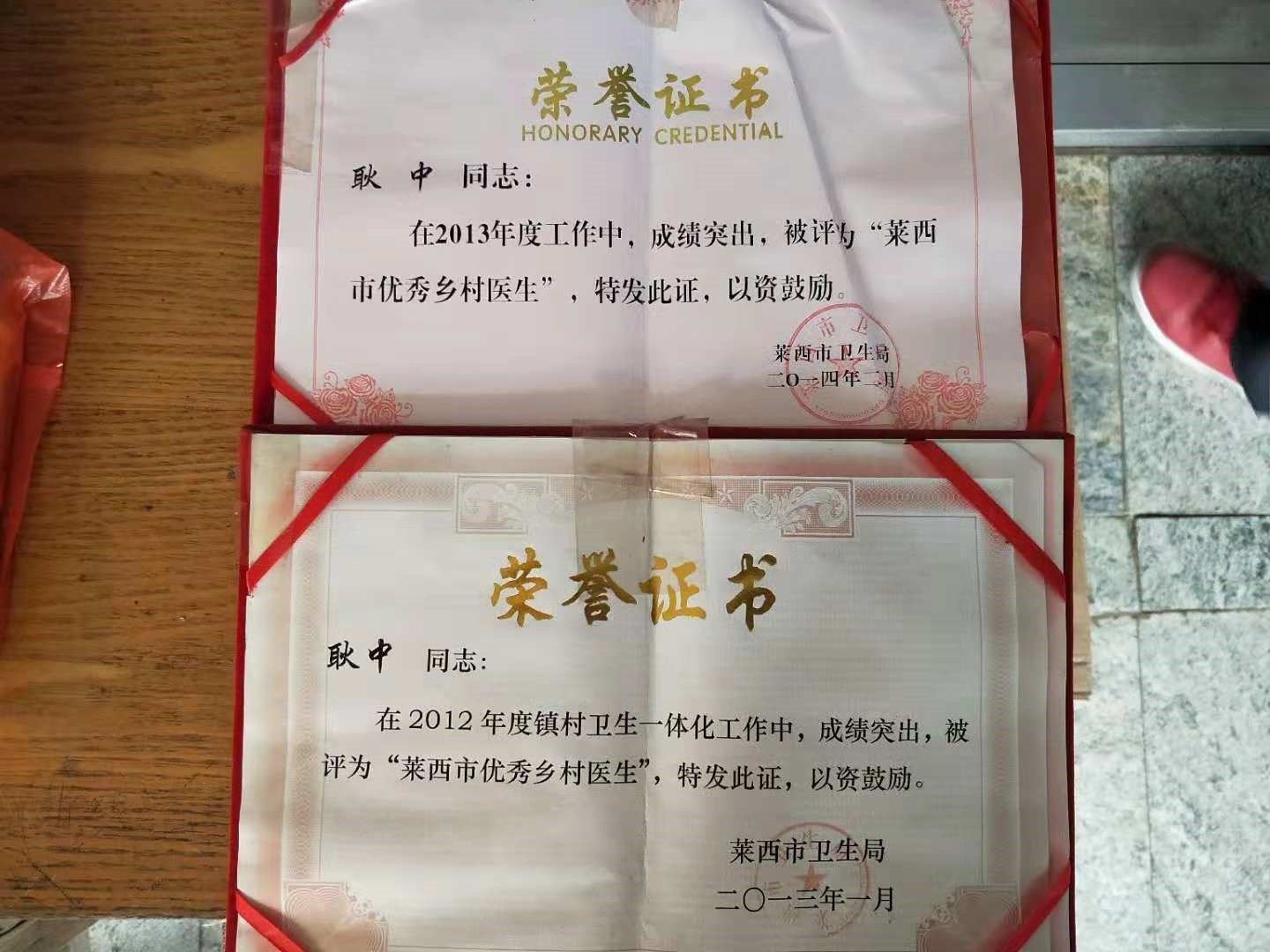 耿中,男,1968年生,中专、曾在解放军81690部队医院工作3年,复员后在青岛市第三人民医院学习2年,后一直在莱西市姜山镇大河头村卫生室工作至今。从医20多年,主要治疗风湿骨病脑血管病为主,多次外出学习,以提高自己的诊疗水平。