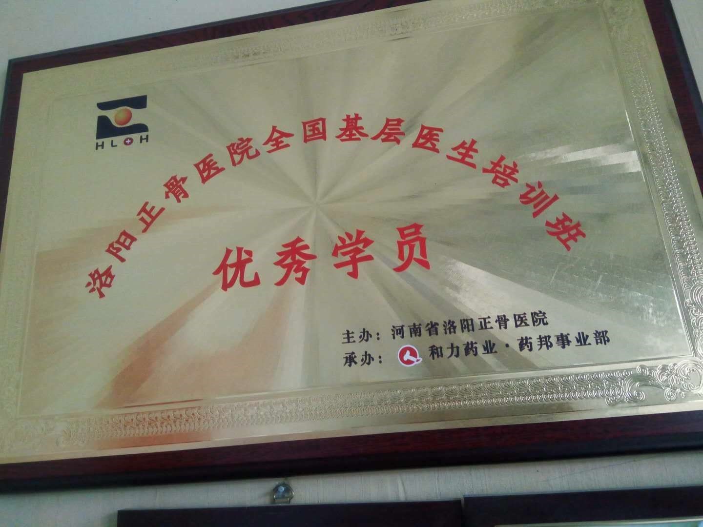 2015年在河南洛郑骨科医院进修学习,被评为“优秀学员”。
