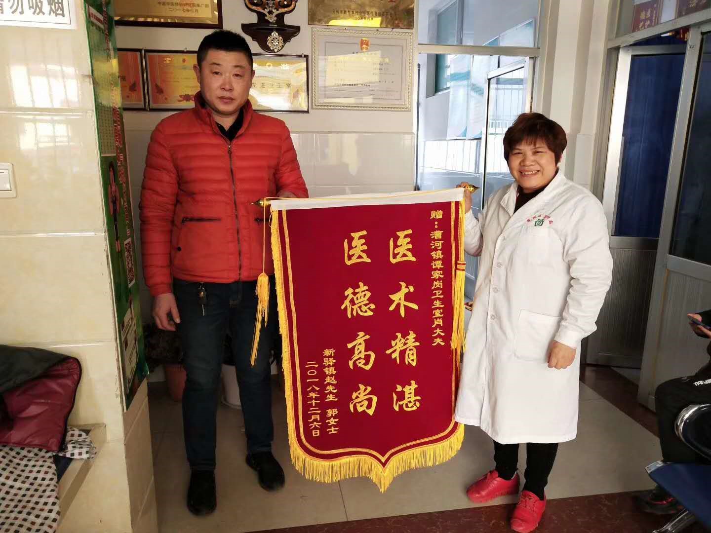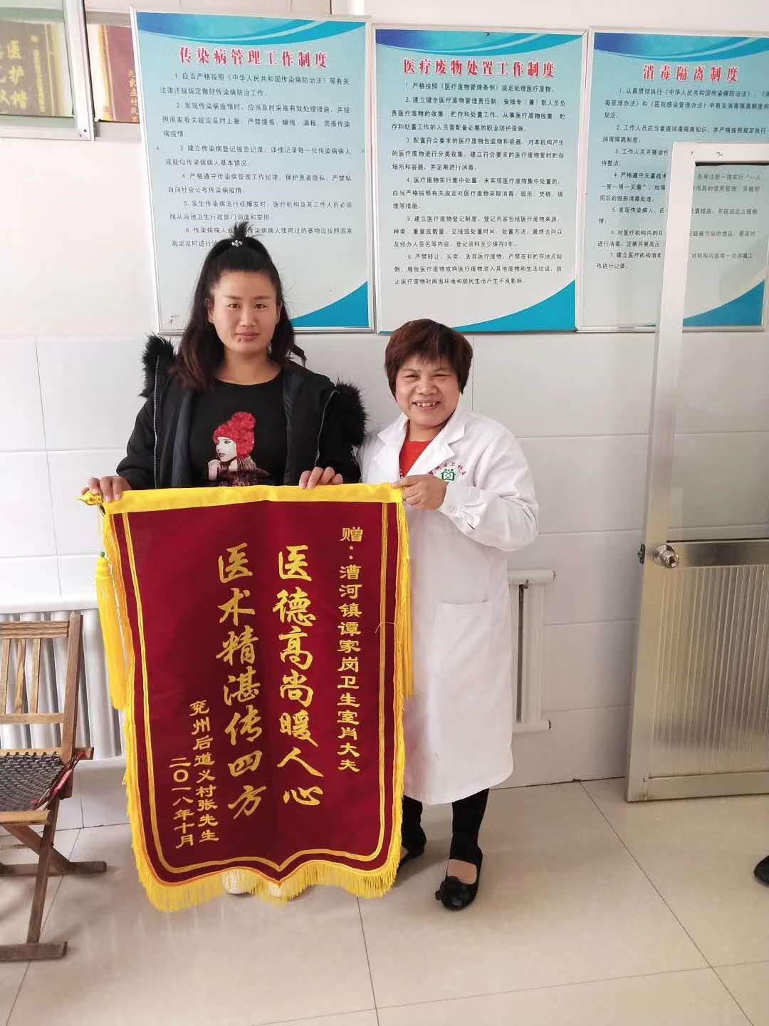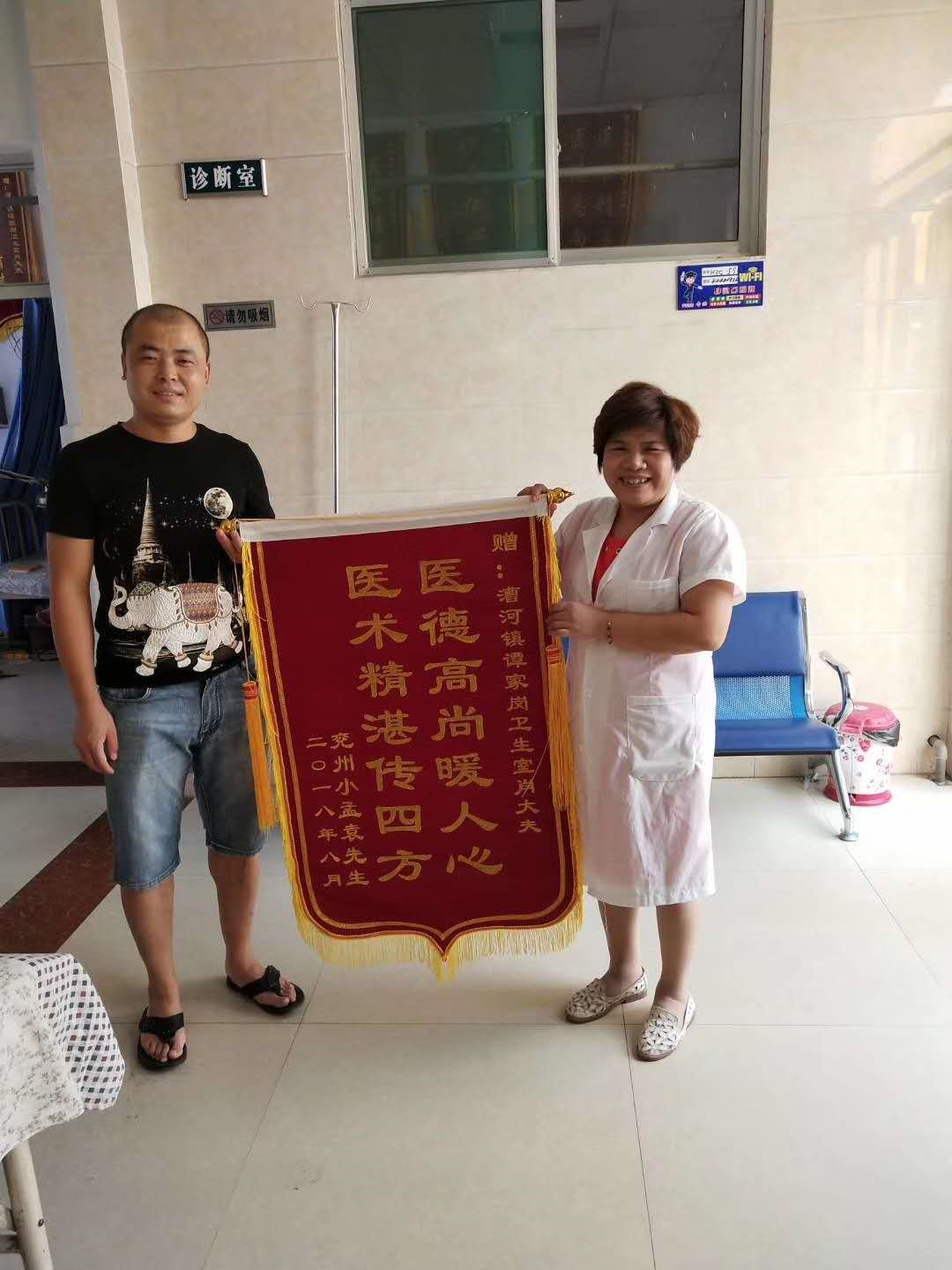 “九九重阳节,浓浓敬老情”在众多锦旗中,挂着一个别具一格的锦旗。医德仁心,兢兢业业的肖干莲医生不仅在治病救人中发挥自己的价值,还怀着一个感恩之心,在重阳节的时候,特别为当地敬老院送去慰问品,奉献爱心。更是被谭岗村村委会评为文明示范,公布在村头文化广场的善行义举四德榜上,以示嘉奖!