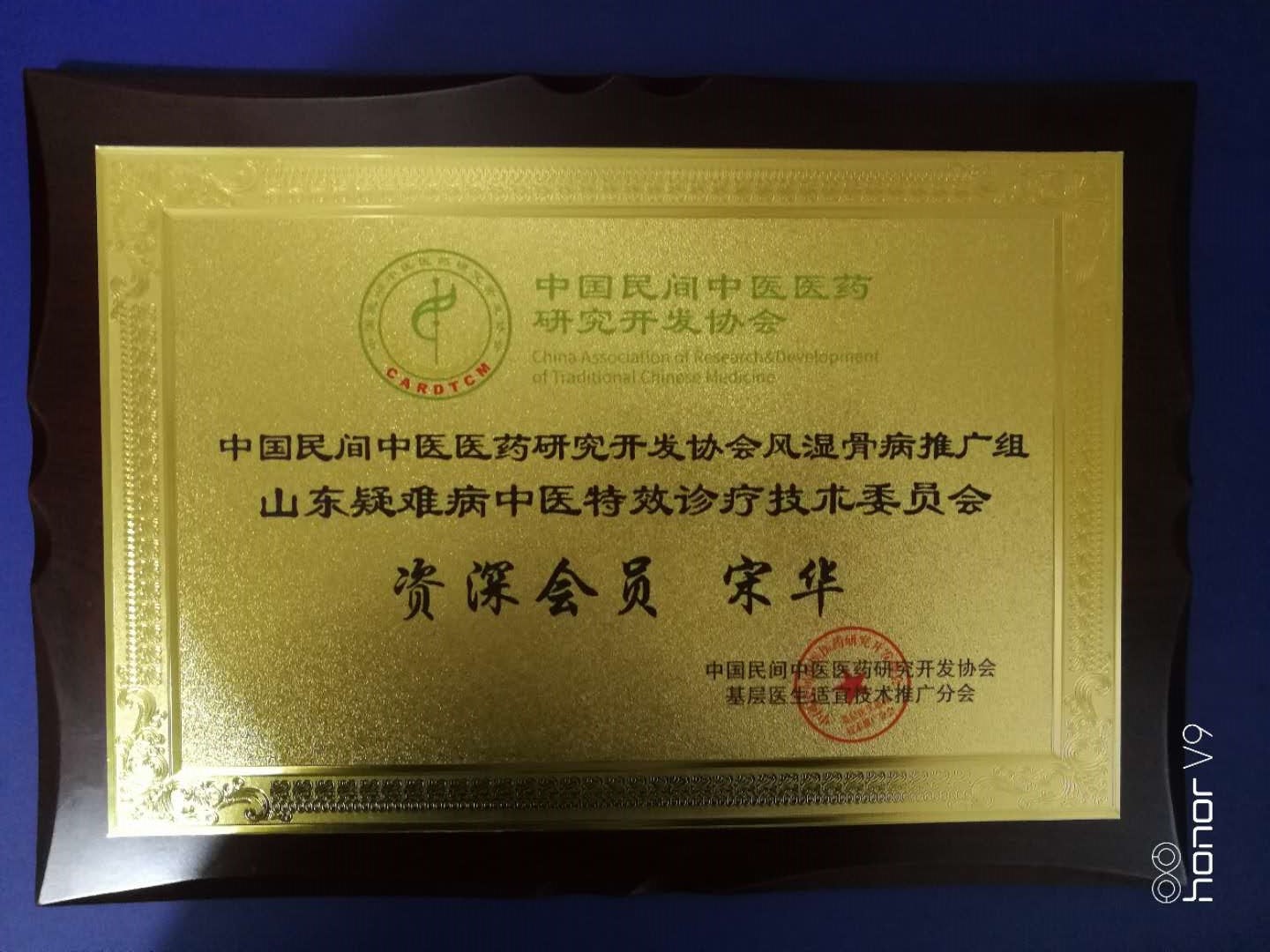 中国民间中医医药研究开发协会山东分会宋华个人荣誉或成就
