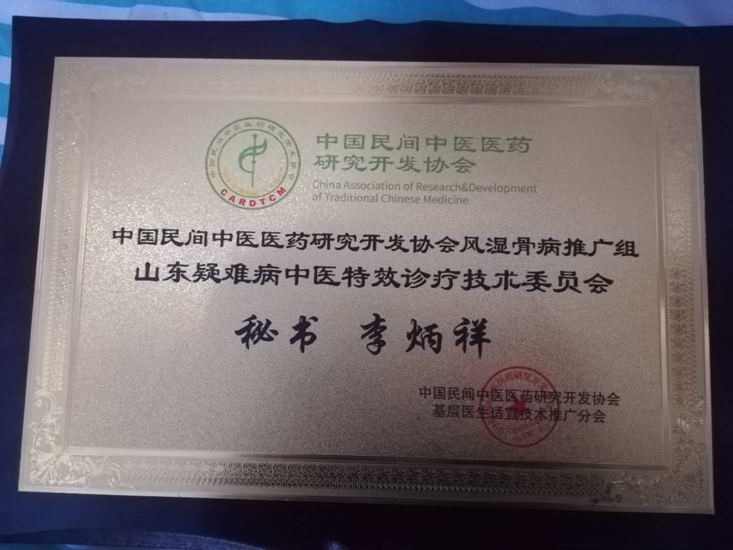 2019年初加入中国民间中医药研究开发协会担任山东分会秘书这可谓是在自己的医学道路上又奠定扎实的基础!