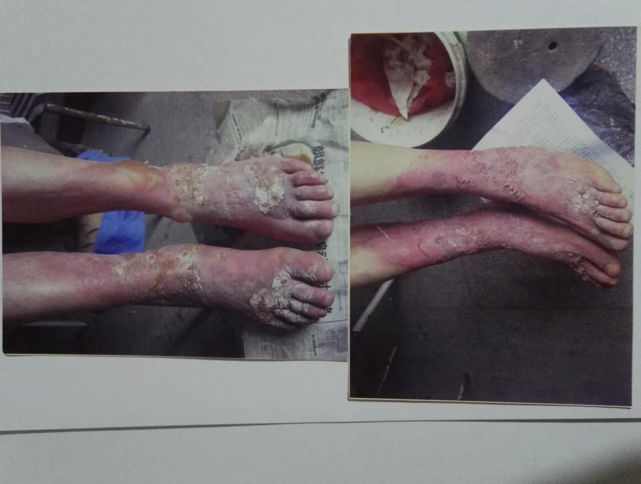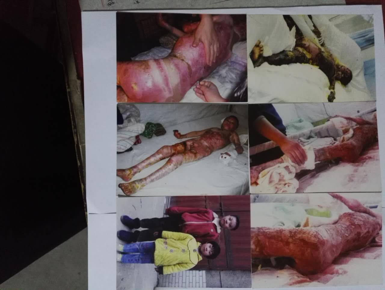 这个是西虢顺涧王英豪9岁,鞭炮炸伤,在洛阳医科大学治疗47天,花费太高没有效果,己下达病危通知书,医院放弃治疗,家人不忍,抱着试试的态度,在我处治疗83天孩子站了起来全好了。