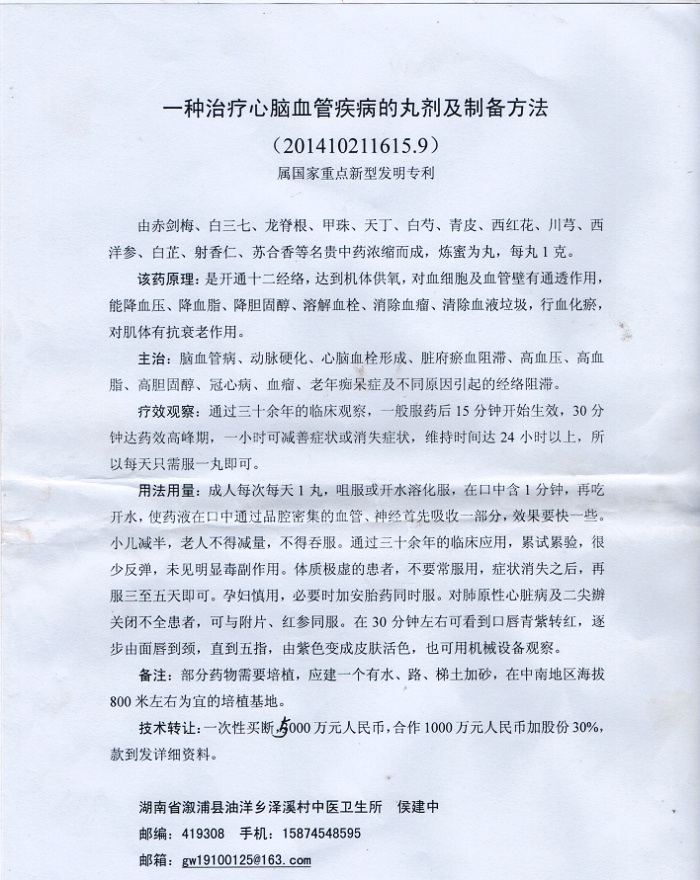 一种治疗心脑血管疾病的丸剂及其制备方法——候医生